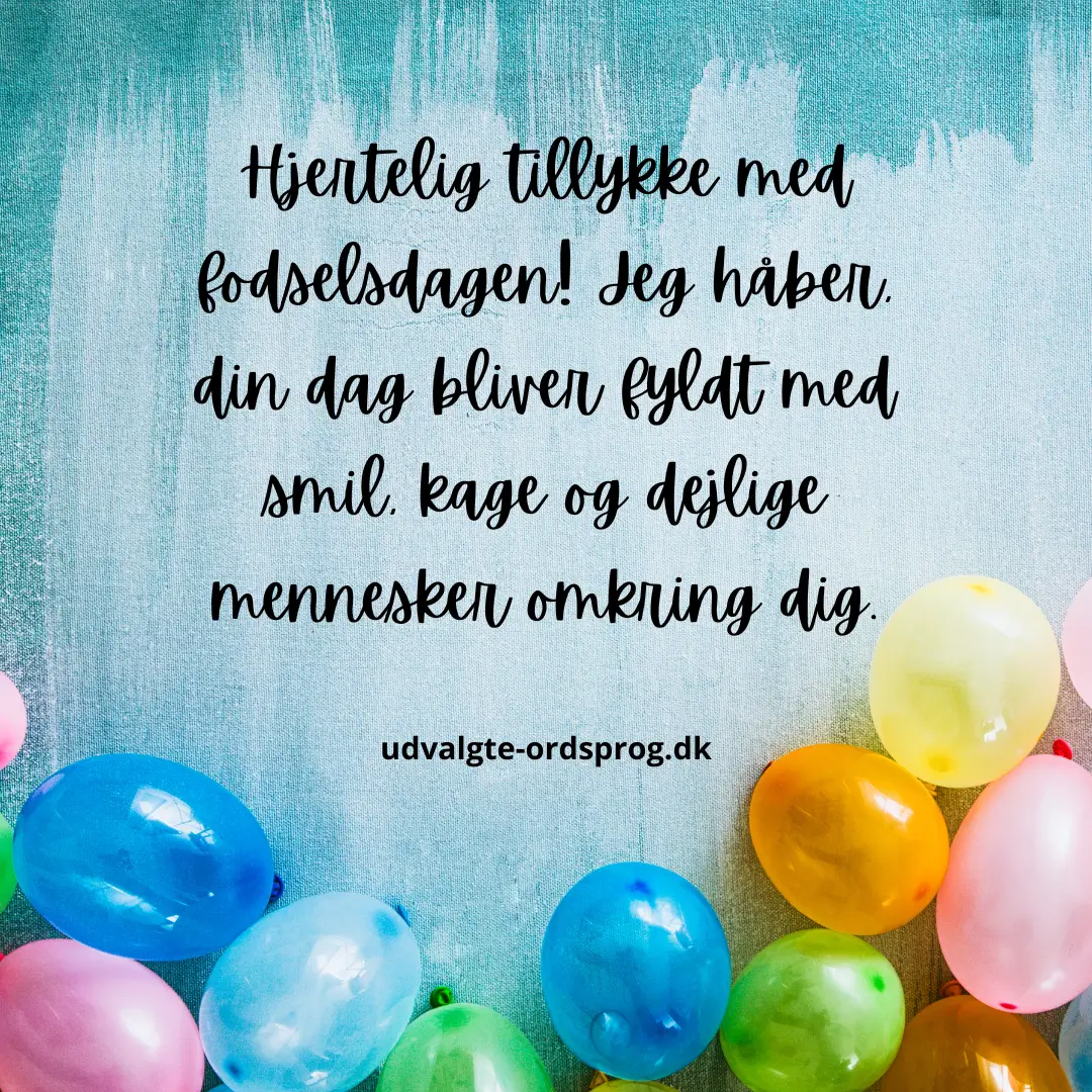 Hjertelig tillykke med fødselsdagen! Jeg håber, din dag bliver fyldt med smil, kage og dejlige mennesker omkring dig.